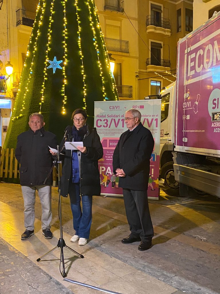 Segorbe, 23 de diciembre de 2025.- El Consorcio Palancia Belcaire (C3V1), gracias a la colaboración de la empresa concesionaria RPB, ha destinado 6.000 euros a Cáritas Diocesanas de Segorbe a través de su campaña “Nadal Solidari C3V1”. Durante el 1 al 21 de diciembre se han recogido un total de 857 toneladas que se han convertido en 6.000 euros, ya que, por cada tonelada conseguida, se han a destinado 7 euros al fondo contra la pobreza de Cáritas Diocesanas.